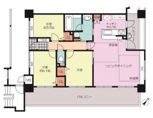 東側、西側の両面バルコニーなので、採光・通風共に良好です